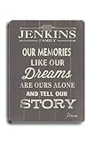 Memories are the key not to the past, but to the future. We all have memories and dreams that make us who we are, and who we will become. Celebrate family memories, dreams, and your family's story with this vintage wood sign for your home, customizable with your family name.